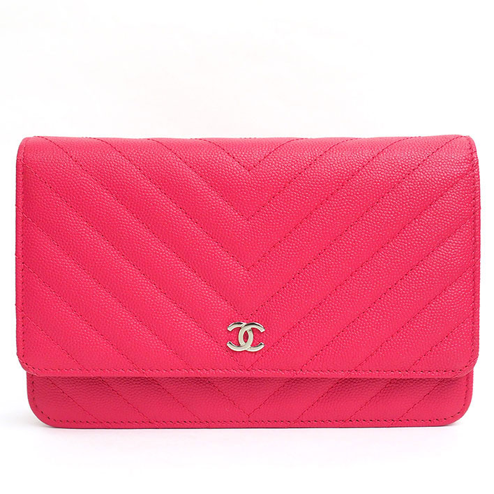 Chanel V-stitched chain wallet Pochette Silver hardware Koko Mark A33814 [Long wallet]